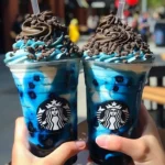 A refreshing and indulgent frappuccino blending creamy cookies and cream flavors with a vibrant blue twist.