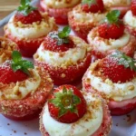 Indulge in the heavenly delight of Cheesecake Deviled Strawberries, a luscious treat that combines creamy cheesecake with sweet strawberries.