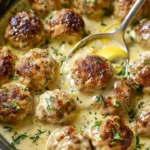 Delightful meatballs made with ground chicken, zesty lemon pepper seasoning, and a smooth creamy sauce, perfect for a hearty meal.