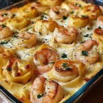 Creamy Shrimp Tortellini Alfredo Casserole