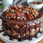 Once cooled, the fun continues! Frost the cake using rich chocolate frosting followed by caramel frosting, alternating layers to create a beautifully striped effect. Finally, sprinkle half a cup each of chocolate chips, shredded coconut, and chopped pecans on top for an added crunch and flavor burst. For the best experience, refrigerate the cake for at least 2 hours before serving to let the flavors meld perfectly.