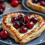 Puff pastry, with its intricate layers and delicate crunch, has a storied history that dates back several centuries. Originally created in ancient times, it was refined by French pastry chefs in the 17th century, becoming a staple in both desserts and savory dishes. The heart shape is often associated with love and affection, making these pastries a perfect dessert for special occasions like anniversaries and Valentine’s Day. Interestingly, cherries are known for their symbolic meaning of love and fertility in many cultures, making this combination not just delicious but also deeply symbolic.