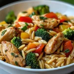 Now that you have the complete breakdown of this delightful Lemon Chicken Vegetable Orzo Stir Fry, it’s time to get cooking! The balance of zesty lemon, tender chicken, and colorful veggies will bring brightness and flavor to your dinner table. This is not just a meal; it’s a celebration of simple ingredients coming together to create something truly delicious. Don’t wait any longer—try this recipe tonight and impress your family or guests with your culinary skills!