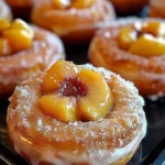 The Peach Cobbler Meets Cheesecake donuts are perfect for various occasions! They make a delightful treat for brunch with friends, a charming dessert for a summer picnic, or a sweet ending to a family dinner. Pair these donuts with fresh coffee, a scoop of vanilla ice cream, or even a dollop of whipped cream to elevate the sensory experience. Drizzling a little extra caramel sauce or honey on top can take your serving to the next level, allowing each bite to resonate with sweetness and warmth.