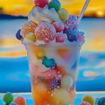 A colorful and delightful drinkable dessert combining creamy sherbet with fizzy soda, perfect for warm days.