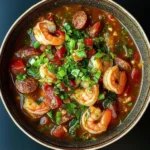 A flavorful and warming soup featuring Andouille sausage, tender chicken, and a colorful medley of vegetables, perfect for any weeknight meal.