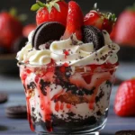Strawberry Oreo Cheesecake Cup. This delightful dessert combines the rich creaminess of cheesecake with the crunchy texture of Oreo cookies, all topped off with juicy, fresh strawberries. It’s a treat that not only looks beautiful but tastes heavenly, perfect for any occasion. Whether you’re hosting a party, celebrating a birthday, or simply craving something sweet, these Strawberry Oreo Cheesecake Cups are sure to please everyone. With easy preparation and minimal ingredients, they’re a comforting yet sophisticated dessert that the whole family can enjoy.