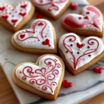 Delicious heart-shaped cookies decorated with royal icing, perfect for sharing on Valentine’s Day.
